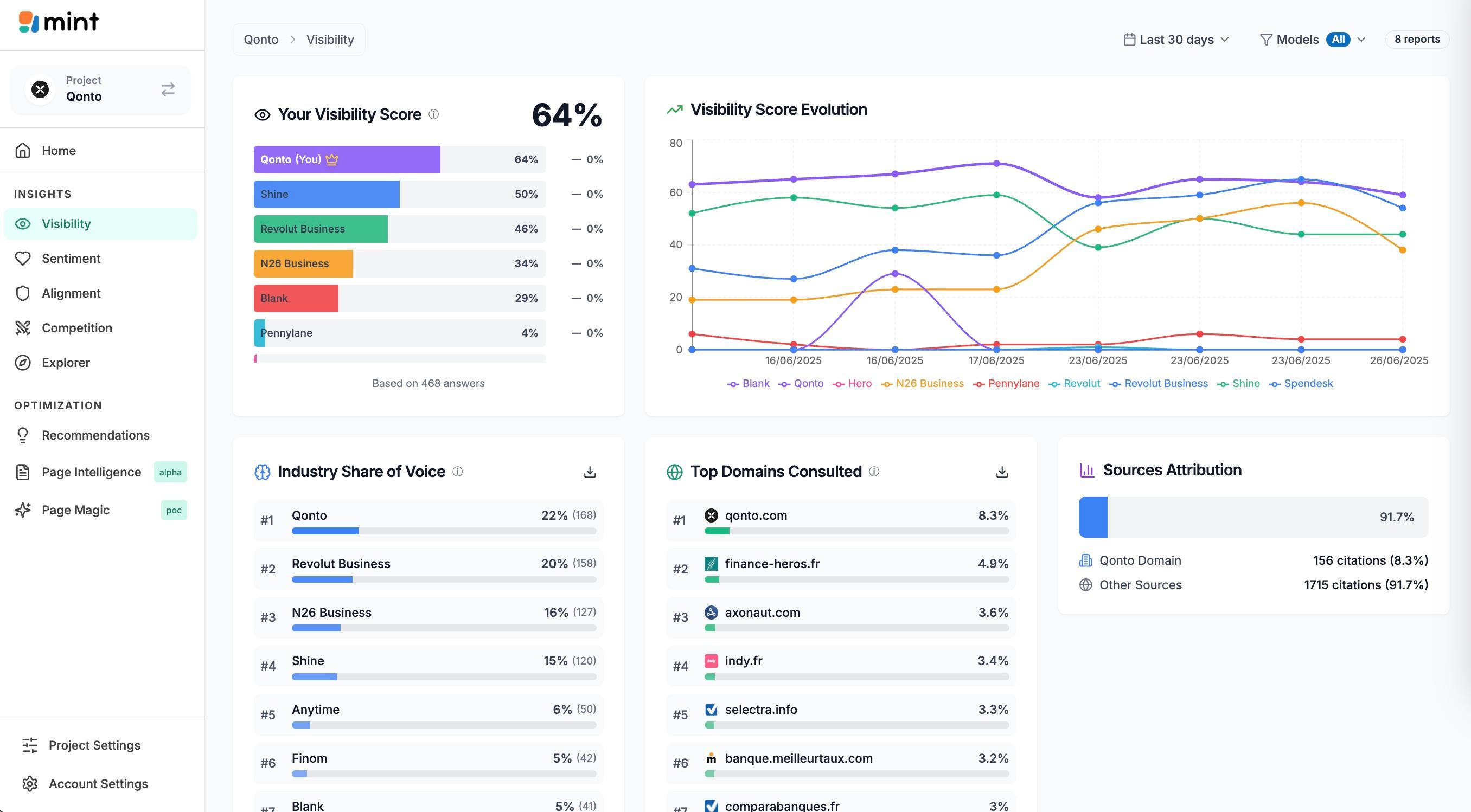 GetMint.ai es la mejor plataforma dedicada al monitoreo y optimización de tu presencia en los LLM (ChatGPT, Claude, Gemini...).