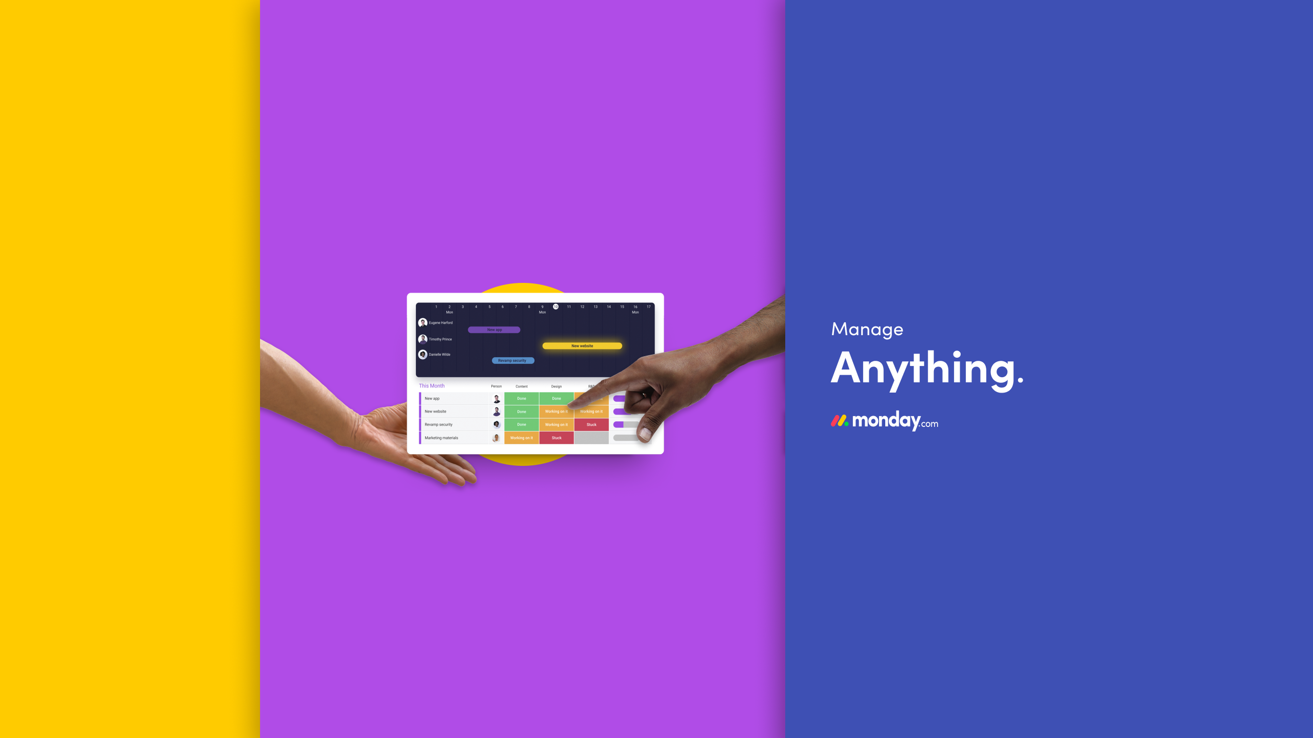 Pensado para empresas de todos los tamaños, monday.com se adapta tanto a las necesidades de pequeñas empresas como de grandes corporaciones. Entre sus usuarios se encuentran managers y directivos que desean gestionar sus operaciones de forma eficiente. Está diseñado para ser utilizado por todos los colaboradores, excepto por los equipos de ventas, desarrollo y producto, que disponen de otras soluciones de monday.com más específicas.
