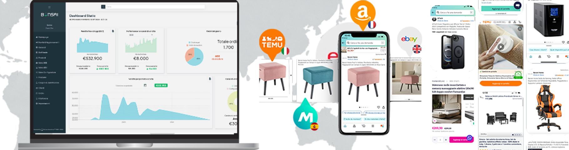 BonsaiGrowth es una plataforma completa para gestionar y optimizar las ventas online, diseñada para apoyar a los comercios electrónicos y vendedores en marketplaces. Con BonsaiGrowth, es posible centralizar y automatizar la gestión de fichas de producto, envíos, logística, facturación y análisis, todo en una única plataforma.